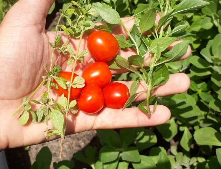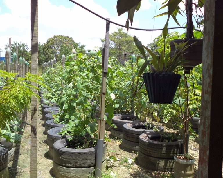 Cultivos em hortas elevadas feitas em pneus
